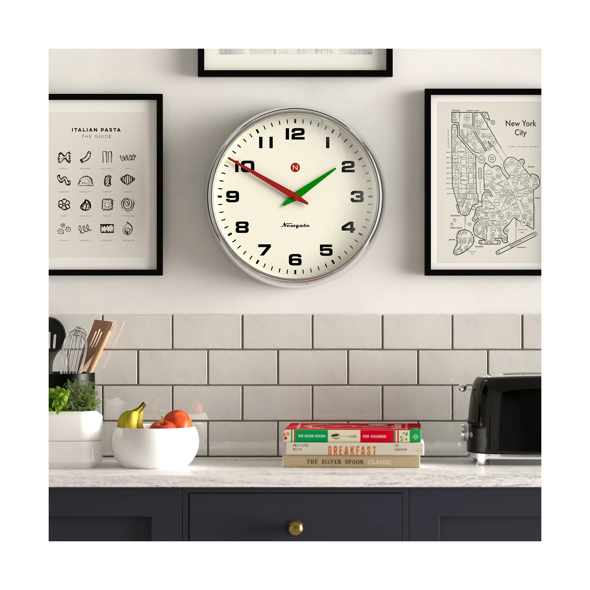 This large wall clock is perfect for adding style and function to a kitchen where wall space is no issue.
